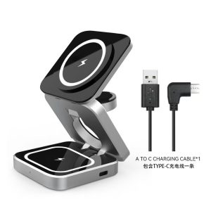 The new 15W magnetic three-in-one wireless charger Mag-safe wireless charging bracket is suitable for Apple 12-16.